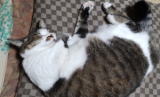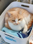 冬の寒い時期は湯たんぽ、夏は保冷剤を敷いてすごしています。悪天候の時は軒先に移動